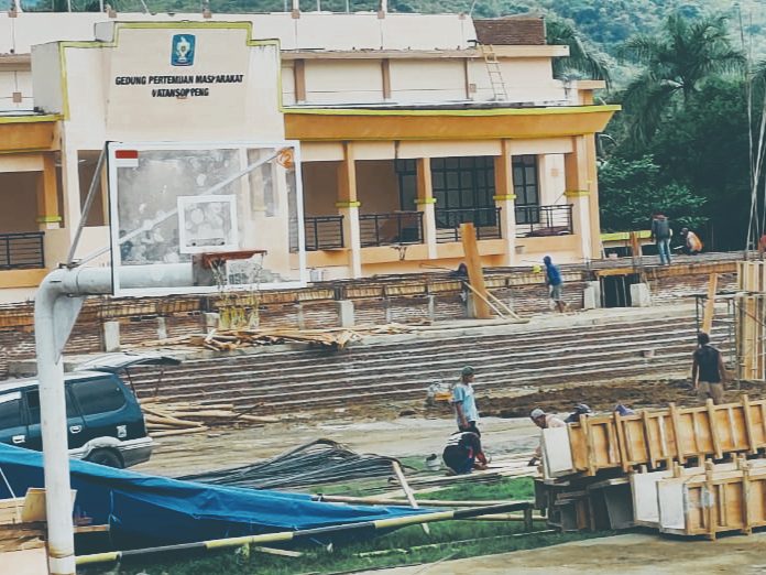 Rehabilitasi gedung pertemuan meliputi renovasi atap gedung dan penambahan kapasitas tribun depan sepanjang 40 meter dengan lebar 10 meter.