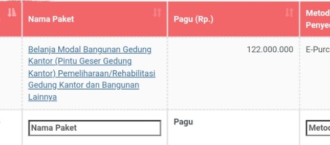 “Belanja Modal Bangunan Gedung Kantor (Pintu Geser Gedung Kantor) Pemeliharaan/Rehabilitasi Gedung Kantor dan Bangunan Lainnya,” bunyi paket belanja tersebut.