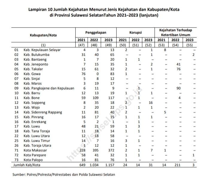 Menariknya, BPS Sulsel menyebut data yang dipublikasikannya ini bersumber dari Polres/Polresta/Polrestabes dan Polda Sulsel.