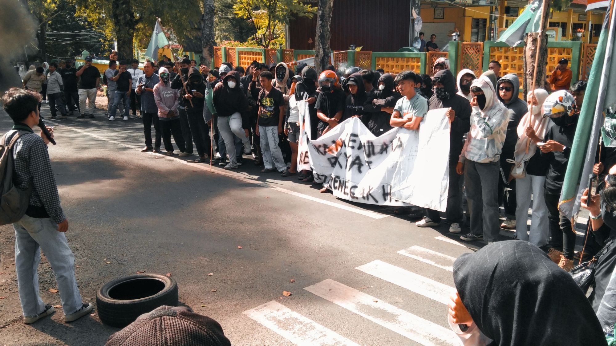 “Gaji dan tunjangan dewan itu terlalu tinggi, sudah tidak masuk diakal padahal sedang ada efisiensi anggaran, makanya kami minta tunjangan itu dihilangkan dan gaji dikurangi,” ujar salah seorang mahasiswa dalam orasinya.