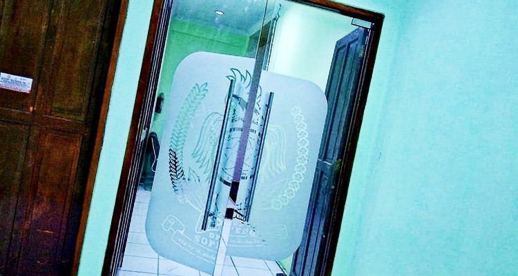 Pintu kaca ruang rapat paripurna sisi timur gedung DPRD Kabupaten Soppeng DBS